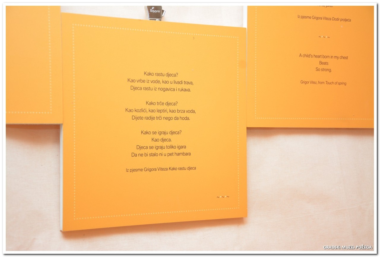 „Čast mi je kao dječjoj gradonačelnici otvoriti izložbu „Djetinjstvo u davna vremena". Često čujemo kako je naše djetinjstvo potpuno drugačije, no gledajući ove izloške vidim da su znatiželja i radost uvijek iste, bez obzira na to jesu li igračke drvene ili digitalne. Ova nam izložba pokazuje kako su naši preci gradili svoje prve uspomene. Hvala svima koji su sačuvali ove komadiće prošlosti kako bismo ih mi danas mogli upoznati!" – ovim je riječima dječja gradonačelnica Požege Antea Akalović izložbu proglasila otvorenom.