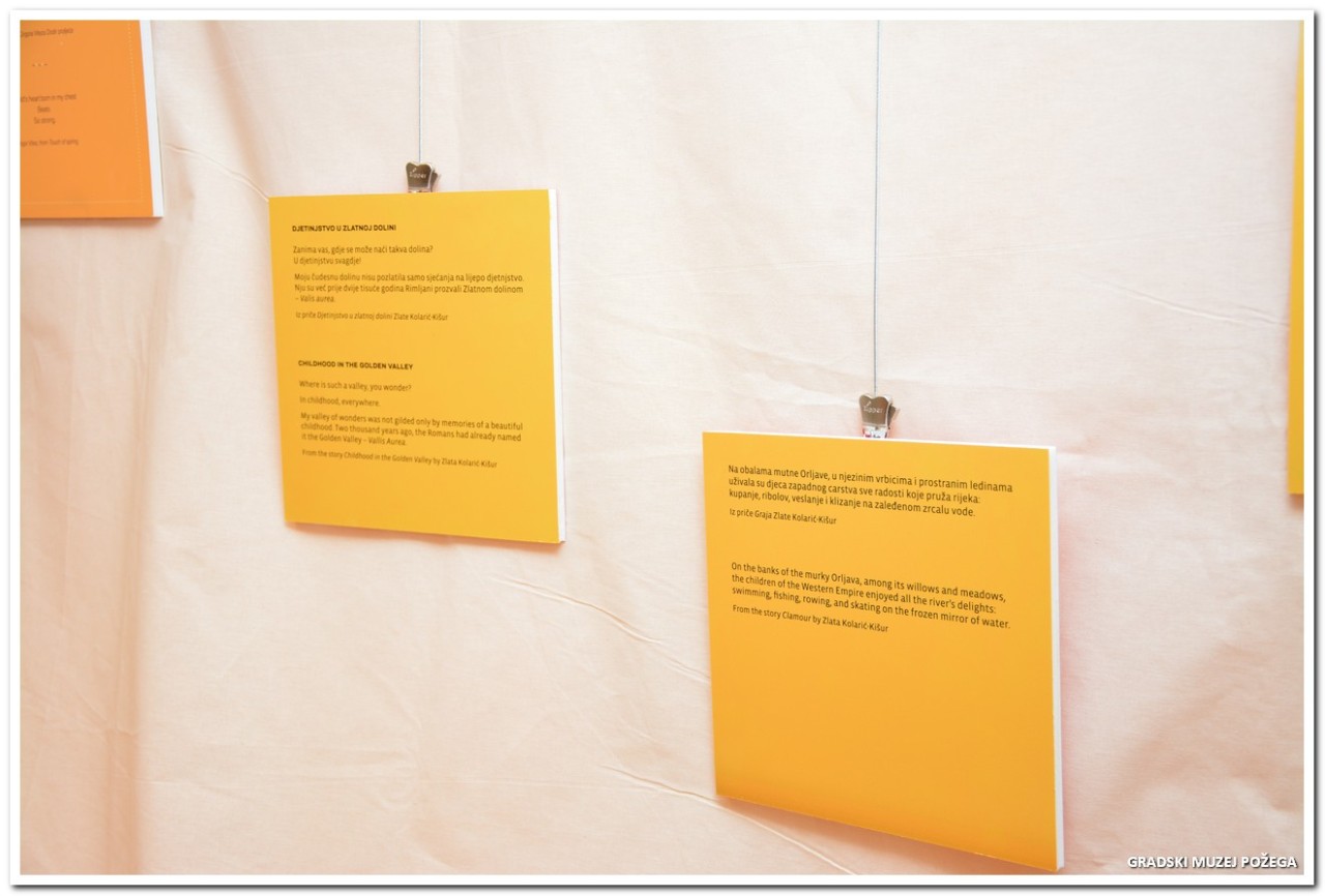 „U vašoj krasnoj Vallis Aurei mi želimo ispričati priču o djetinjstvu koja je zapravo počela čudnovato i usput, a sada živi već pet godina. Zapravo je djetinjstvo isto kao i prije 3000 godina, no ono što se promijenilo su materijali i uvjeti u kakvima živimo. Završila bih s jednim citatom Zlate Kolarić-Kišur koji govori da su u vašoj lijepoj dolini sva djeca imala mjesto pod suncem jer ono što je uistinu važno je nositi dolinu djetinjstva u sebi." -naglasila je autorica izložbe.