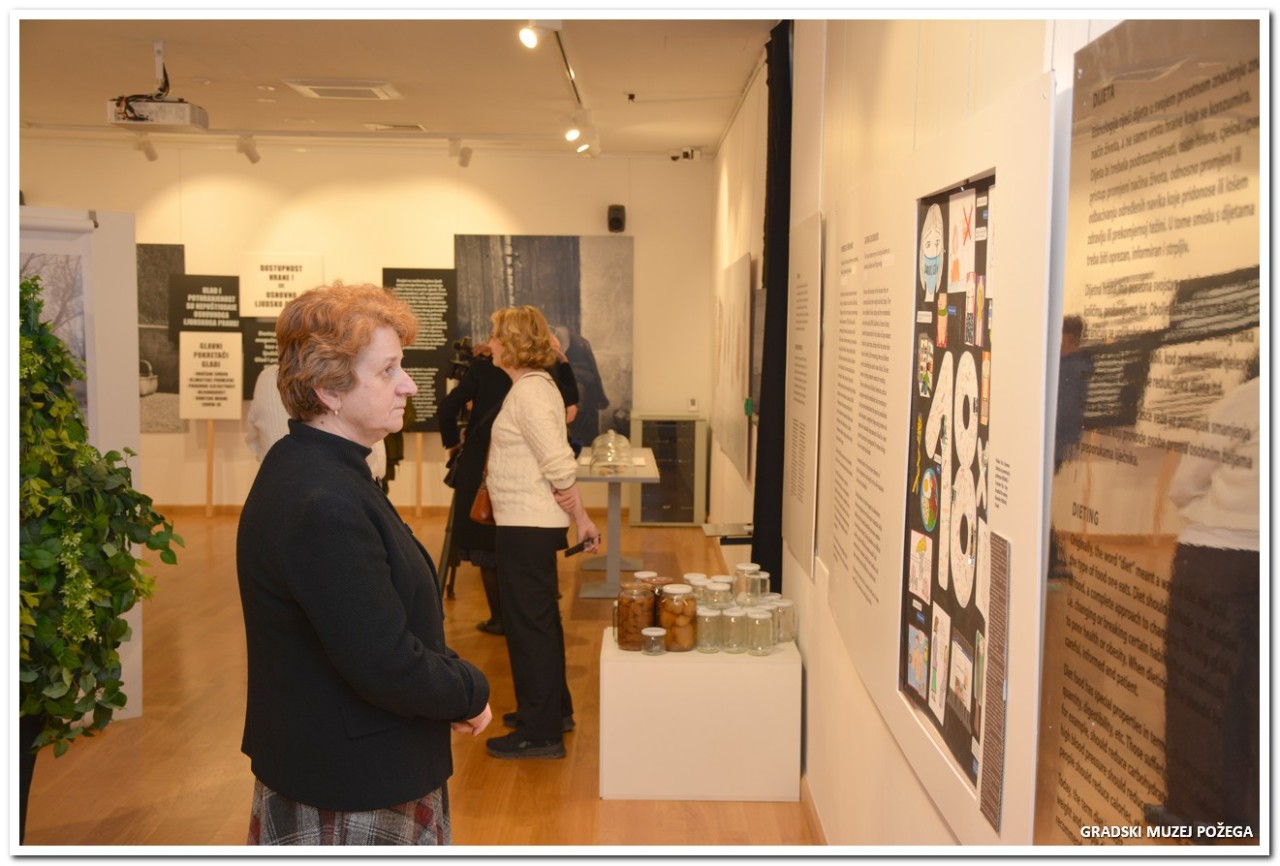 Ravnateljica Marić podsjetila je na surovu stvarnost gladi koja je često daleko od naših očiju: „Ovoga dana dok otvaramo ovu izložbu u svijetu je nestao jedan grad veličine naše Požege i to samo zato što nisu imali što pojesti". Iznijela je i potresne podatke kako u svijetu dnevno od gladi umre oko 20.000 ljudi, dok godišnje zbog pothranjenosti život izgubi 2,5 milijuna djece.